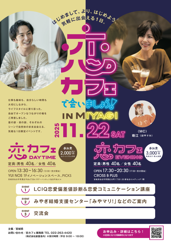 恋カフェで会いましょう!in MIYAGI(昼の部) 予定表 2025/11/22(土) 13:30 - YUI NOS 1階 イノベーションスペース 地図を表示 婚活イベントのMCをします!! 定員:男性40名/女性40名参加費:2,000円(スイーツ・ドリンク付き) 詳しくはこちら URLをコピーする 報告する